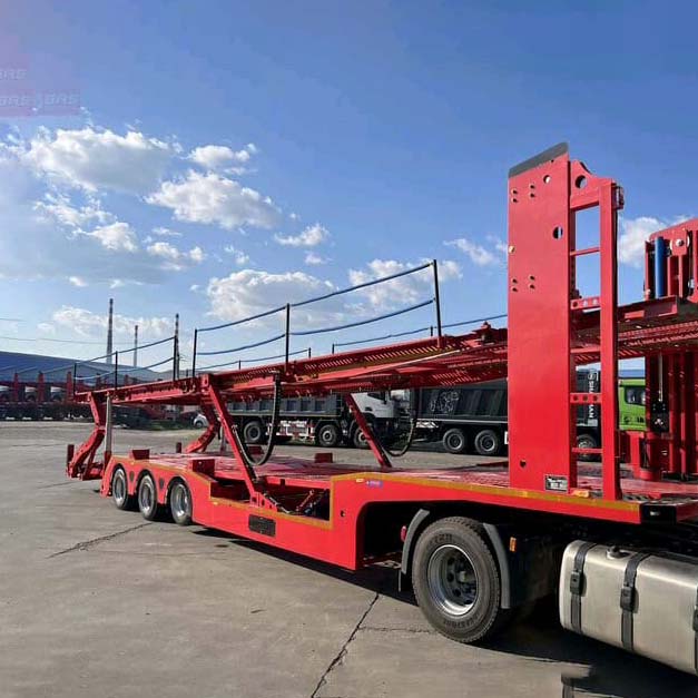 3nápravový 8 návěs Carrier Kontejnerový návěs s inteligentním monitorovacím systémem: integrované funkce GPS určování polohy, záznamu jízdy a diagnostiky poruch, monitorování stavu vozidla v reálném čase, aby byl proces přepravy bezpečný a kontrolovatelný; s nastavitelnými úchyty: Nastavitelné úchyty pro sedan jsou k dispozici pro různé velikosti vozidel, aby bylo zajištěno, že každé vozidlo může být pevně podepřeno a nedochází k otřesům během přepravy; s osvětlovacím a výstražným systémem: Přední a zadní jsou vybaveny vysoce svítivými LED skupinami osvětlení a ukazateli směru pro zajištění bezpečnosti jízdy v noci nebo při špatné viditelnosti; s humanizovaným designem: v zadní části kabiny je k dispozici odpočinková zóna vybavená základním obytným zařízením, které poskytuje pohodlné prostředí pro dálkové jízdy.
