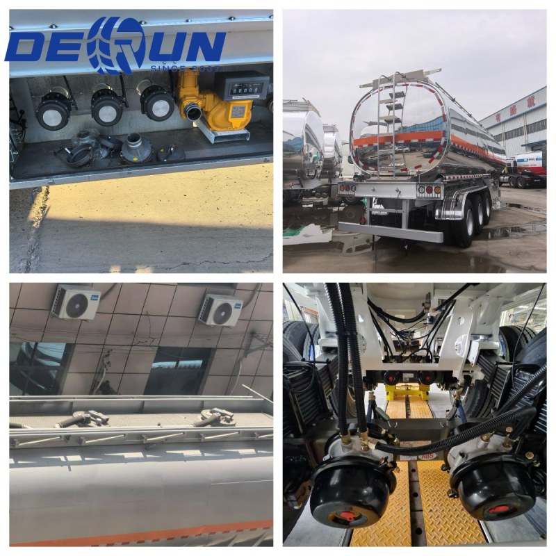 Třídavý přívěs o olejové nádrži na hliníkovou slitinu Derun Derun je vybaven tělem nádrže vyrobené z slitiny hliníku, který nabízí lehkou konstrukci a odolnost proti korozi. Vnitřní protikrytý destičky a kompartmenty účinně potlačují pohyb kapaliny, což zvyšuje stabilitu během přepravy. Horní část je vybavena krytem průlezu a rozhraním obnovy páry, zatímco spodní část je vybavena pneumatickým nouzovým brzdovým ventilem, vše v souladu s argentinskými nakládacími a vykládacími předpisy. Bílý reflexní povlak snižuje zvýšení teploty ze slunečního světla a minimalizuje ztráty odpařování paliva. Ocas nádrže obsahuje vyhrazené rozhraní pro senzory na úrovni kapaliny, což usnadňuje budoucí instalaci inteligentních monitorovacích systémů zákazníky.