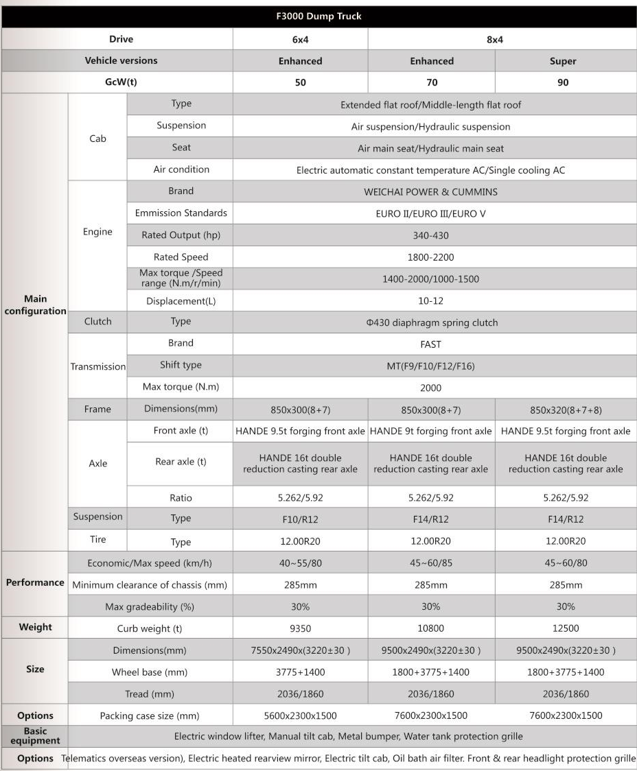 Sklápěč Shacman F3000 6x4 8x4 má vysokou kapacitu: Pokročilá náprava přijímá technologii s redukcí rychlosti s dvojitou fází a technologii terénních náprav pro terénní nápravu a trvalou kapacitu s novým typem vyváženého zavěšení přináší lepší zatížení a trvanlivost.